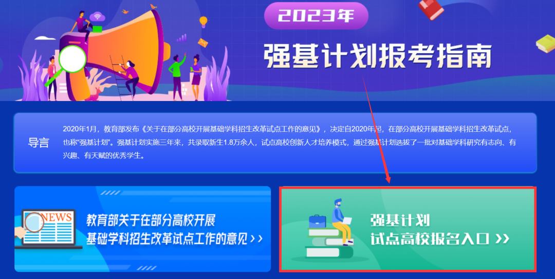 2023年强基计划已开始报名,考生和家长可以复制下方链接进入教育部阳光高考网站查看各大院校2023年强基计划招生简章、实名注册并报名。